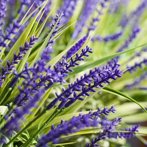 Immerse in the tranquillity of cascading greens interlaced with stunning blue lavender and blossoms, evoking a sense of calm and serenity.