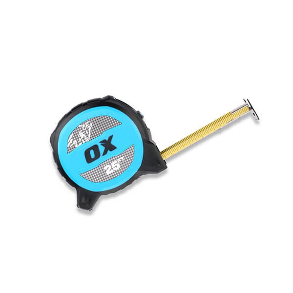 Built tough for the jobsite, the Ox Tools Pro Tuff Blade Measuring Tape delivers unmatched strength, comfort, and performance. Available in 16-foot and 25-foot lengths, this tape features a 1¼-inch wide nylon-coated blade designed for superior rigidity and durability. With a 13' standout and 15' reach, it makes solo measuring fast and hassle-free.
